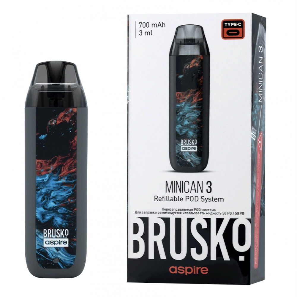 Перезаправляемая Под-Система Бруско Миникан 3 (Brusko Minican 3) 700 mah, Серый Флюид - купить в Воткинске